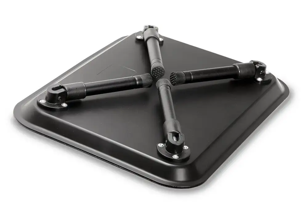 Die zusammenklappbaren Beine machen diesen Tisch zu einem gepflegten und kompakten Begleiter für Ihre Ausrüstung. Die Beine sind auch für Nivellierung und verschiedene Höhenanforderungen einstellbar. Abgeschlossen in einem schwarzen Kohlenstoff-Effekt.