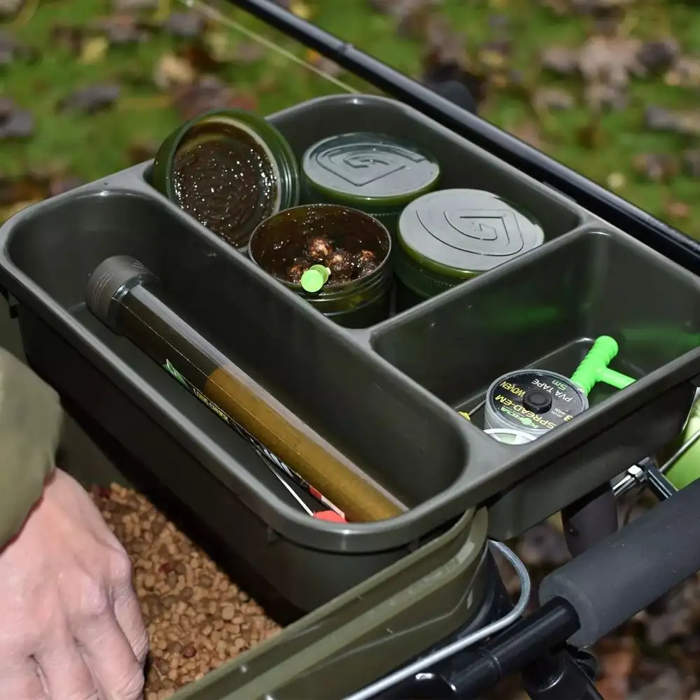 Eine Küvette, die für den 17-Liter-Behälter ausgelegt ist. Das konische Design sitzt bündig im Inneren des Behälters und die 3 separaten, unterteilten Fächer eignen sich hervorragend für die Organisation und Lagerung. Das clevere Design erlaubt es der Küvette, an der Seitenwand des Behälters zu sitzen und bietet so eine hervorragende Effizienz.